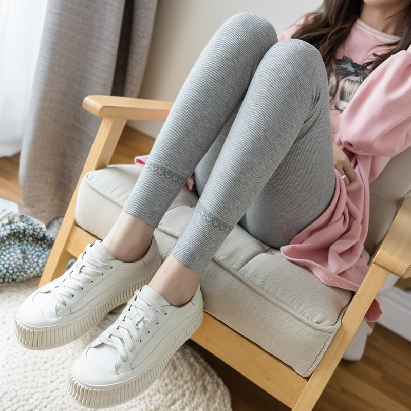 여성 봄가을 하이웨스트 레이스 레깅스 9부 팬츠
